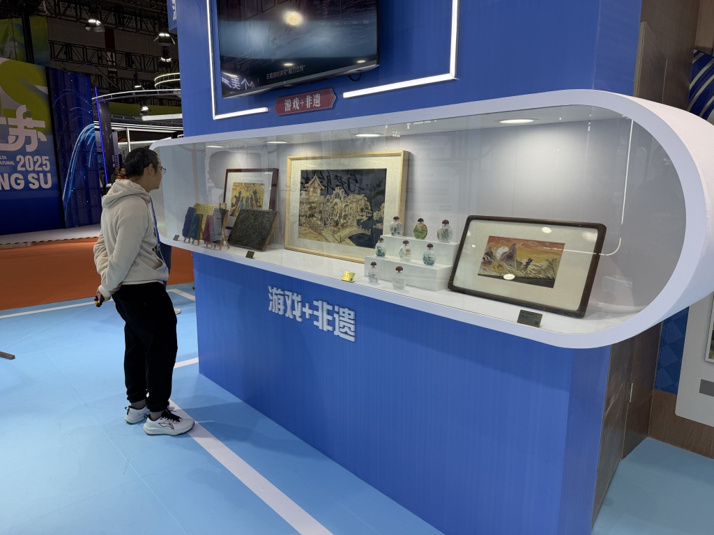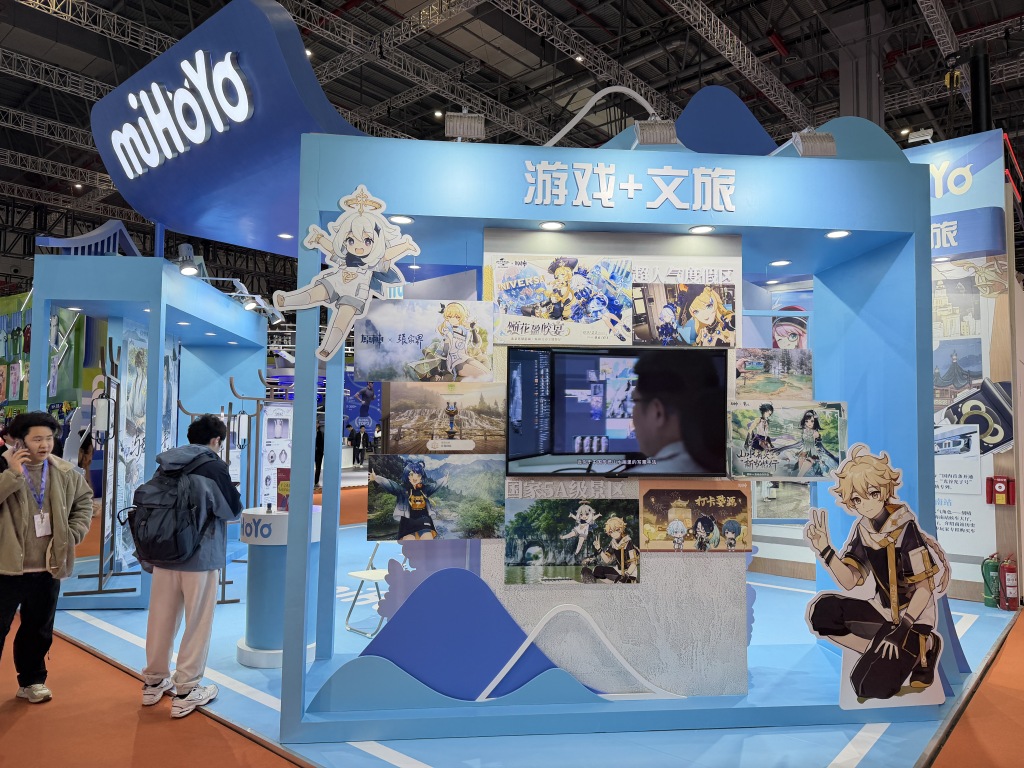 米哈游展台,木版年画、内画、顾绣、麦秆画四项非遗引人注目。这些作品出自米哈游的《流光拾遗之旅》非遗项目。这一长期非遗项目耗时一年,寻访七位非遗传承人,通过木版年画、内画、龙泉青瓷、顾绣、麦秆画、蛋雕、金银细工等七项非遗技艺,复刻《原神》游戏中的角色与场景,实现“游戏+非遗”跨界联合。以数字化为技术手段,以传承传统文化为内核,讲好中国故事,助力中华传统文化出海。米哈游还拍摄了系列纪录片,向全球玩家展示中国丰富的非物质文化遗产,目前已发布7期。