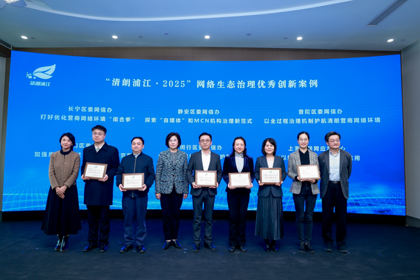 今年,上海市委网信办升级完善“网络综合治理协同联动机制”,参与部门不断增加,协同治理领域日益丰富,机制运行有力有效。在上海市委网信办牵头协调下,各涉网管理部门齐心协力、各区网信办履职尽责、属地网络平台积极参与,在网络生态治理领域形成了很多可圈可点的工作经验。全市共有34家单位选送了56个网络生态治理创新案例,其中12个案例入选“清朗浦江2025”网络生态治理优秀创新案例,并在总结活动现场获得表彰。
