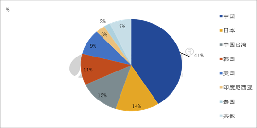 印度是全世界PVC进口最多的国家,占全球进口总量的17%左右。印度的PVC需求主要以农业(灌溉管、排水给水管等)为主,其次主要用于建筑行业(包括型材、薄膜和电线电缆等)。从印度进口来源国看,中国大陆常年稳居首位,2024年印度进口自中国大陆的PVC占比41%,日本、中国台湾、韩国、美国进口占比分别为14%、13%、11%、9%。