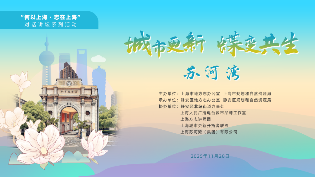2025年11月20日,“何以上海志在上海”对话讲坛系列活动第六期“城市更新蝶变共生:苏河湾”在苏河湾中心42楼的党群服务中心举行。作为2025年“城市更新蝶变共生”系列活动的最后一站,本期对话聚焦苏河湾如何通过持续的蝶变焕新、多元业态融合与人民城市建设,为上海的城市更新提供“可漫步、可阅读、可共享”的世界级滨水区实践样本。