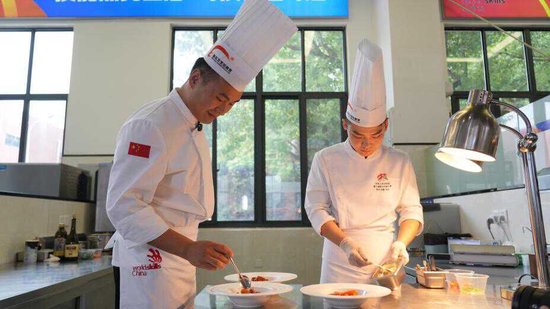 新东方烹饪学校的丁朋老师,作为从世赛选手转型“金牌教练”的典范,向记者生动展示了他的“教学哲学”:“文火”淬炼理论根基,“武火”打磨实战技艺。他的课堂,既有知识的深度,也有厨房的烟火气。