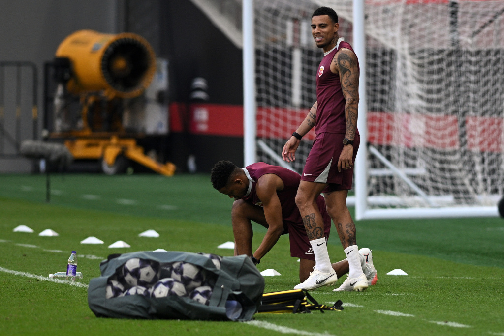 外援古斯塔沃(右)在训练中。