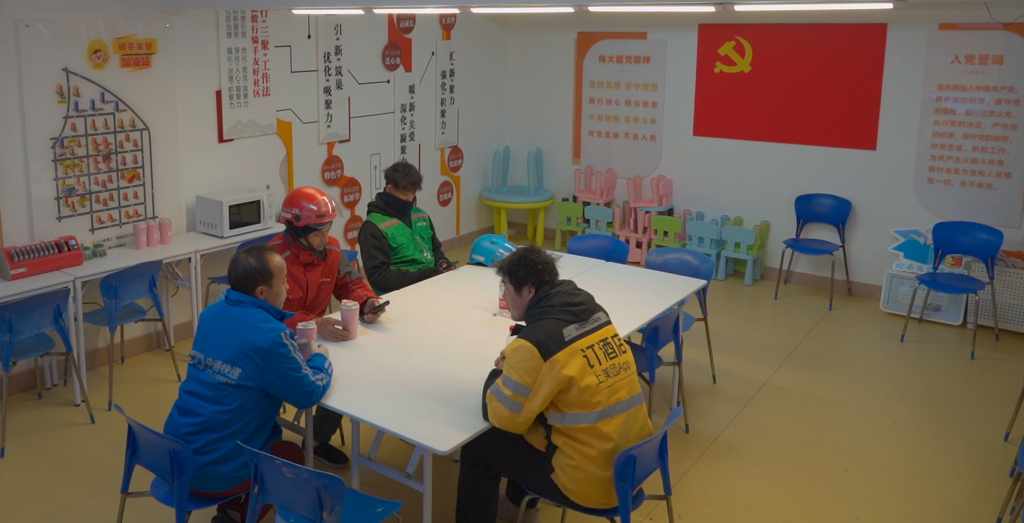 骑手在驿站内休息 受访者供图