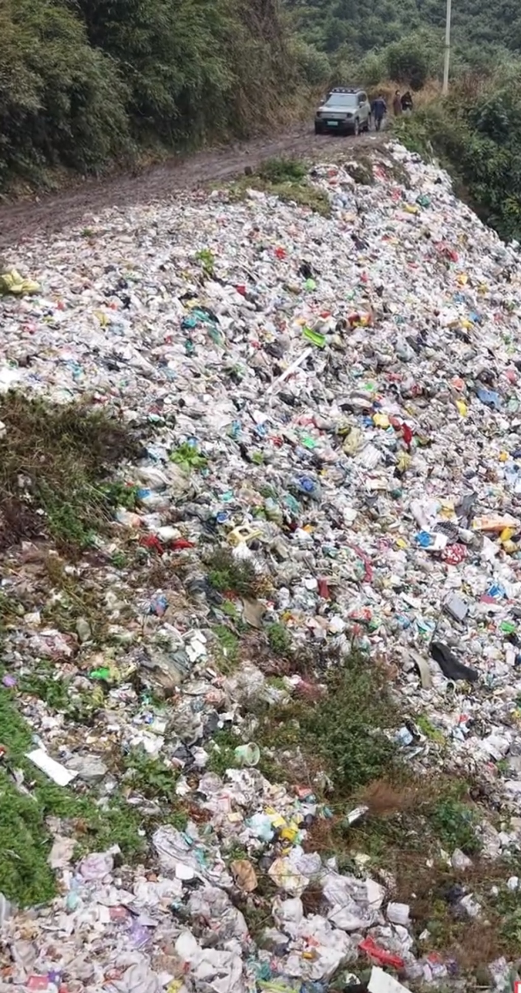 网友发布的视频画面显示,大量白色垃圾随意倾倒于一条马路边上,并称这里位于深山,引发广泛关注和热议。