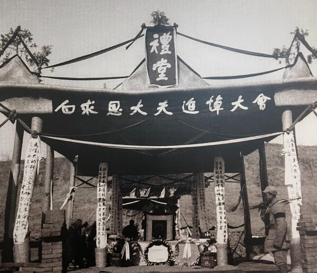 1939年,舒同书写的白求恩大夫追悼大会标牌
