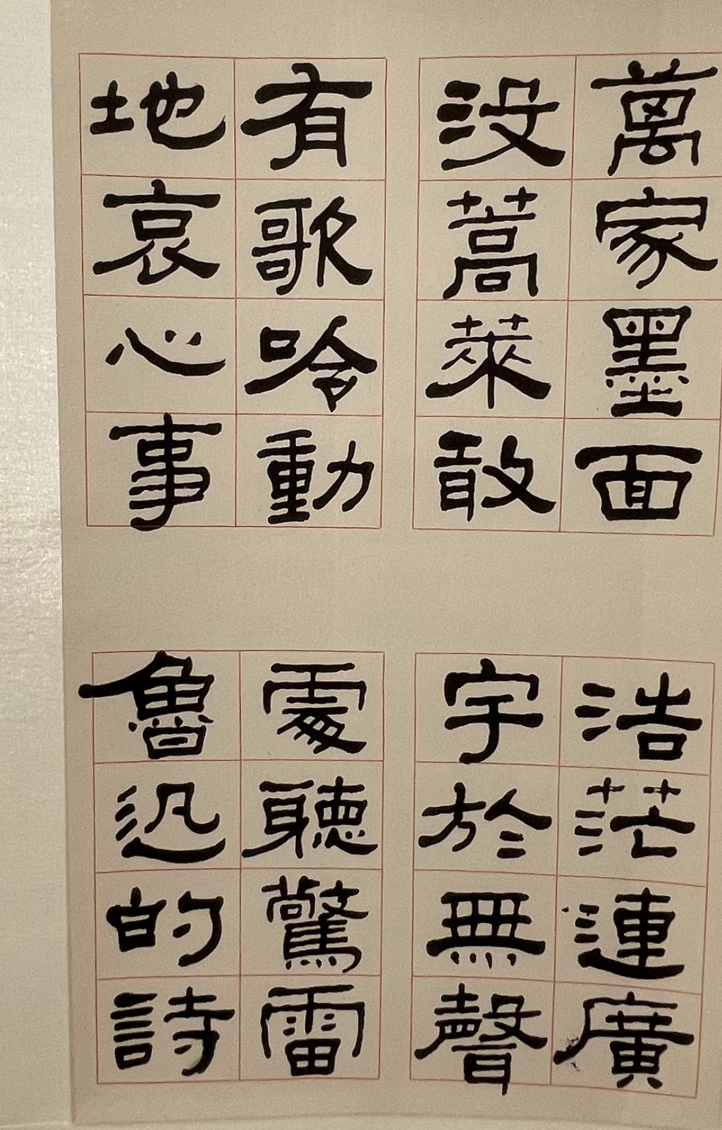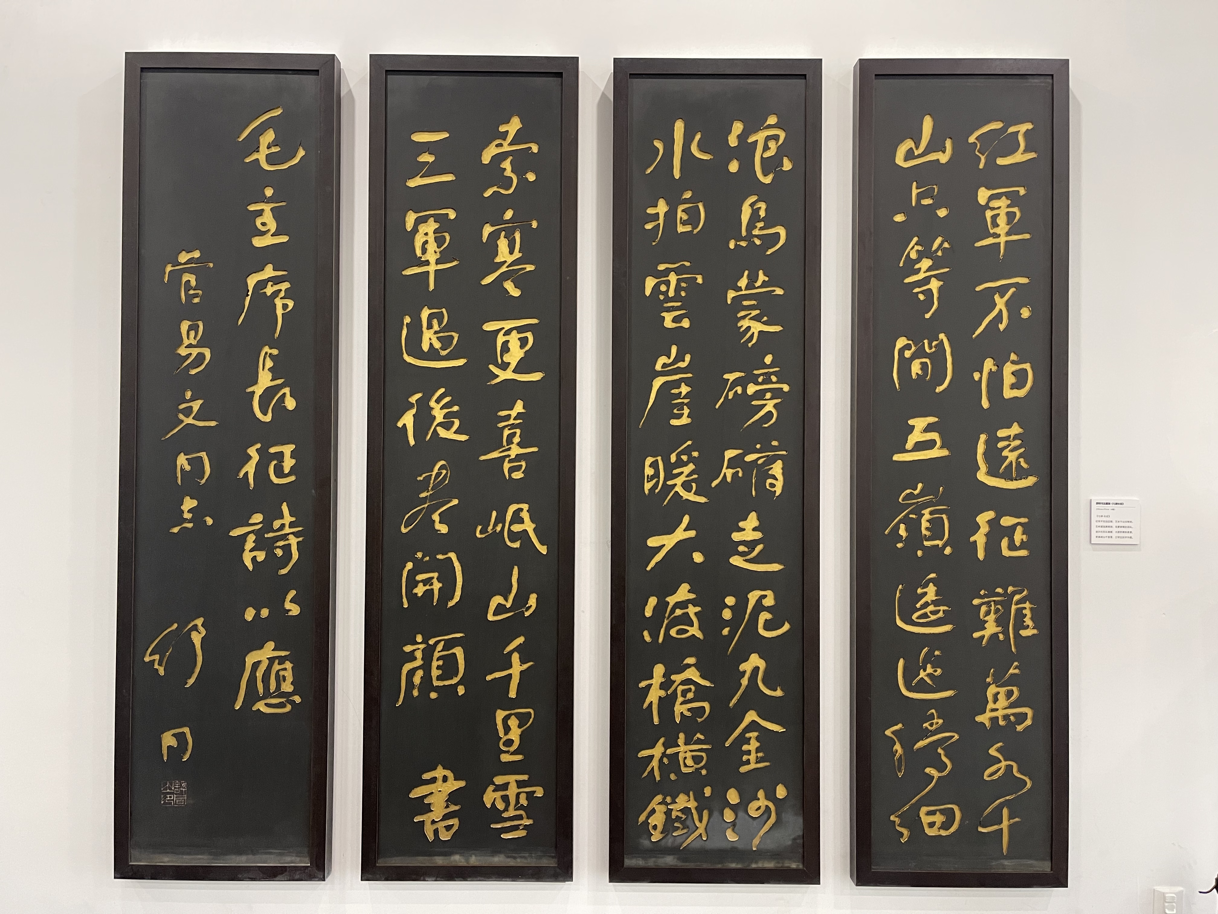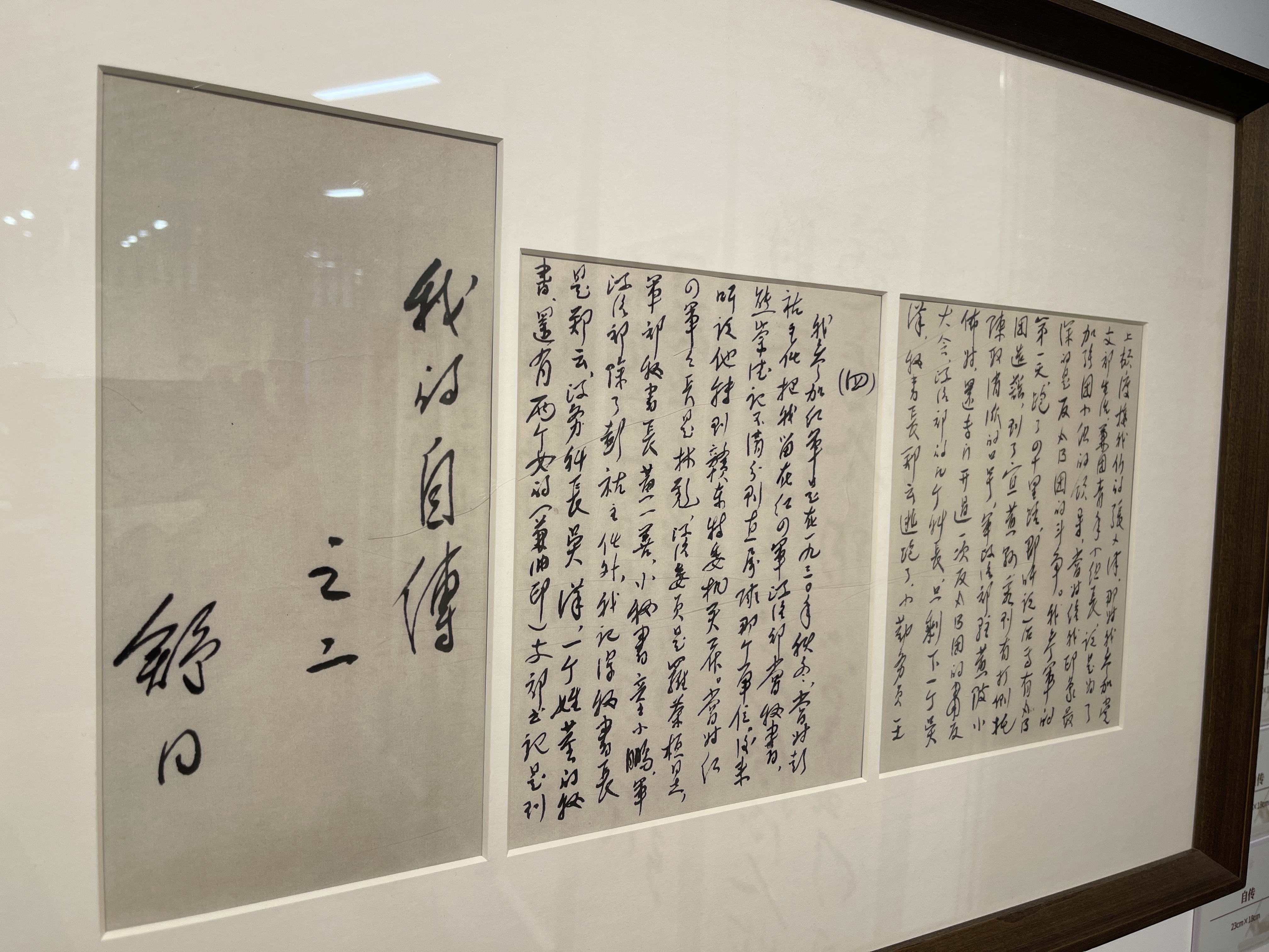 此次文献展以“笔阵横扫”为主题,集中呈现舒同先生书法作品文献复制品50余组(件),涵盖其代表性榜书、毛泽东诗词题材创作、自书诗及题字等多种类型。展览系统展现舒同先生从长征时期笔戈并举到创立“舒体”书风的艺术历程,突出其“七分半”字体融汇楷、行、草、篆、隶与颜、柳、何绍基等名家精髓的独特风格。此外,还展出了大量舒同先生与上海深厚渊源的文献资料,呈现他在上海华东局工作期间对海派文化的影响,以及其书法在当代的传播与接受。观众可近距离欣赏《长征》《清平乐六盘山》《黄鹤楼》《宋庆龄故居》《全国农展馆》《许家崖水库》等经典作品的复制文献,感受其笔墨中蕴含的雄浑气魄与时代温度。