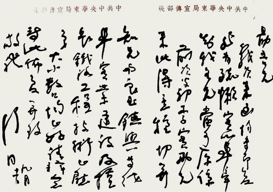 他在抗战时期,曾应毛泽东主席指示题写“中国抗日军政大学”,在1949以后的上海,他更是题写了铁路枢纽“上海站”以及华东师范大学、同济大学等,并使用至今——舒同书写的“上海”二字已成为城市标志字体,他的书法早已融入上海这座城市的肌理。
