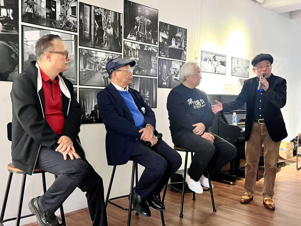 《烟火忆念顺昌路》开幕式上的嘉宾们(从左到右)著名歌手张行、教授陈祖恩、制片人顾晓东、摄影家陈海汶