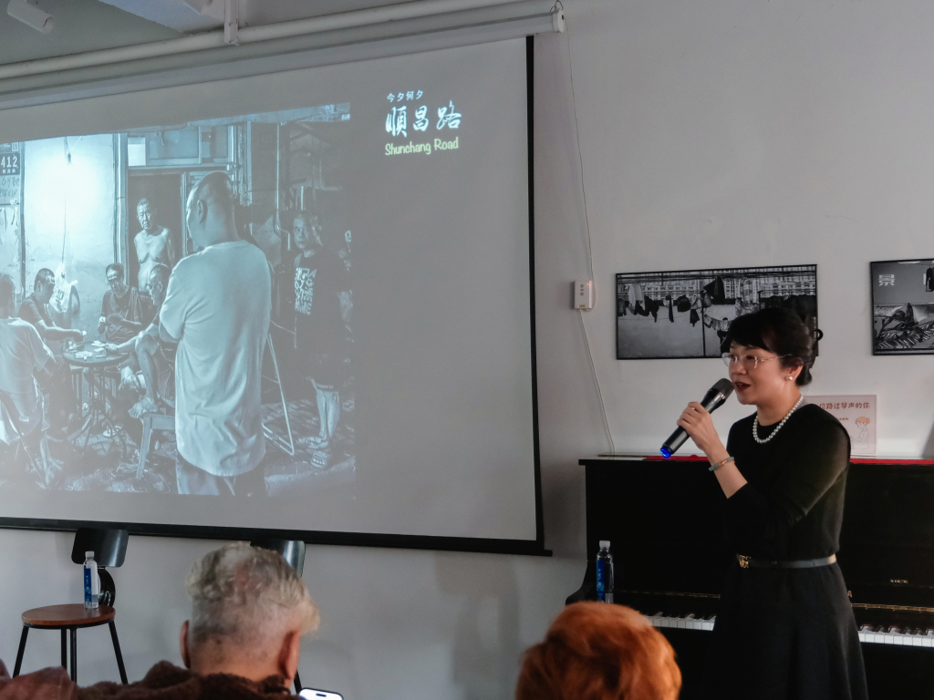 黄唯分享了《今夕何夕顺昌路》个人摄影集中的影像以及创作的心路历程;在开幕式的嘉宾共叙环节,歌手张行先生谈道:“无论是顺昌路,还是菜肉馄饨,都寄托着上海文化的自豪感。摄影对画面的叙事比电影震撼,黄唯的影像有种失落,记录了上海的变迁,城市在变好,当然也会有所失去。”陈祖恩教授认为:“在历史叙事时,图片比文字有力量。菜肉馄饨和顺昌路,在过去消逝之后,会对未来有新的期待。”制片人顾晓东表示:“文字、照片、电影,都是这个城市的印记,场域和空间因为有了人的分享才会变得丰满。”