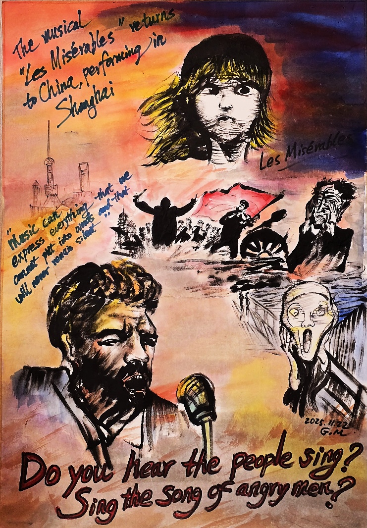 据“澎湃新闻私家历史”报道(2025-11-18),音乐剧《悲惨世界》于近期重返中国,在上海大剧院开启为期55天的驻演。该剧改编自法国作家、政治家维克多雨果(Victor Hugo,1802—1885)1862年的同名小说。阿兰鲍伯利(Alain Boublil)作词,克劳德-米歇尔勋伯格(Claude-MichelSchnberg)作曲,1980年首先以法语音乐剧形式上演,1985年推出英文版。此次在中国巡演的版本为音乐会版,演员们身着戏服演唱,不配以舞台布景与动作表演。2018年法语版音乐剧《悲惨世界》来华首演时,指挥亚历桑德拉克拉维罗在告别观众之时,曾引用雨果的一句话:“音乐能表达那些我们无法言说且不会永远沉默的一切。”