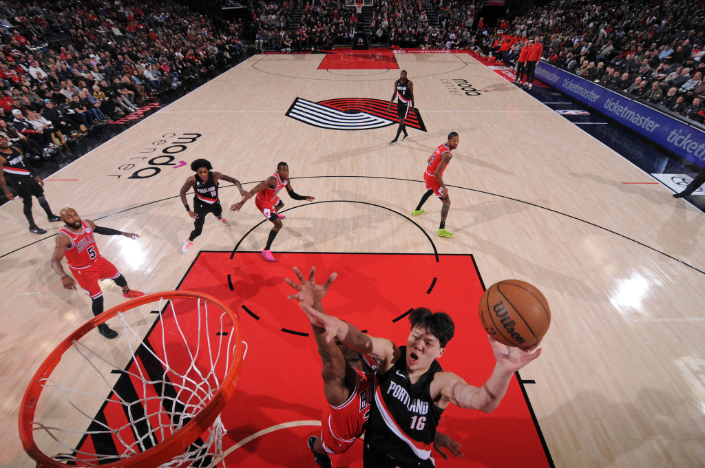 比赛第二节,杨瀚森替补出场,在一次进攻中,他在三分线外接到队友西索科的传球,彼时,开拓者的中锋哈尔滕施泰因并没有及时上前干扰,杨瀚森短暂观察了一下队友的位置,然后张手投篮,篮球划出一道漂亮的弧线,稳稳落入网窝。