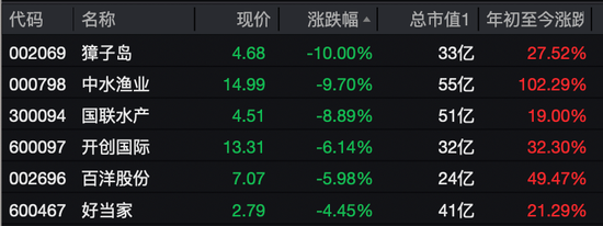 而此前涨幅较大的水产板块出现明显回调,中船系、航运等板块走弱。