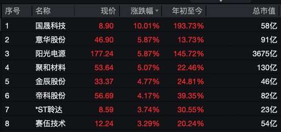 今天上午,光伏设备板块拉涨。10cm涨停,录得12日8板。截至午盘,该股报8.9元/股,最新市值为58亿元。