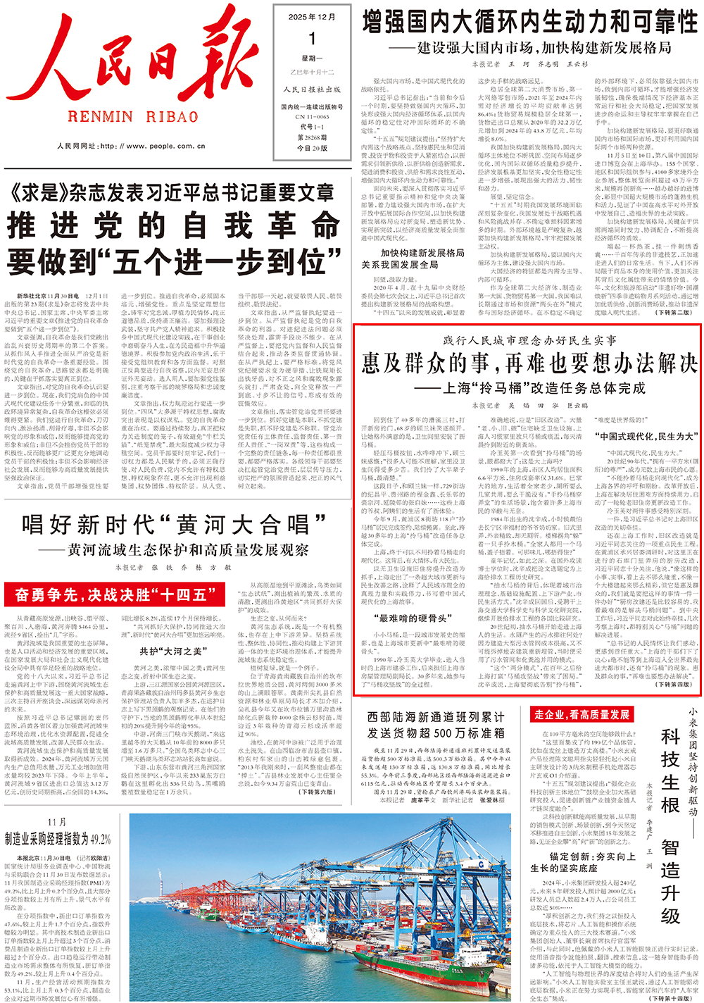 以无卫生设施旧住房提升改造为抓手,上海走出了一条超大城市更新与民生改善之路,诠释了人民城市理念的真理力量和实践伟力,书写着中国式现代化的上海故事。