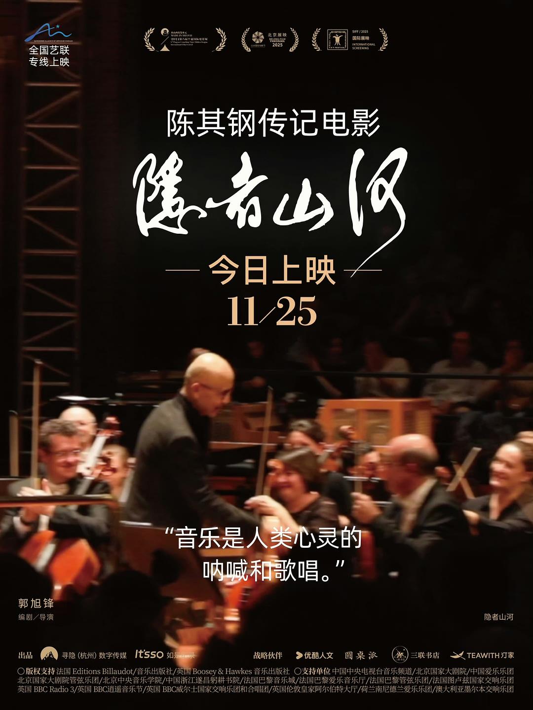 导演郭旭锋耗时七年拍摄的陈其钢艺术传记《隐者山河》,便定格了这段归隐岁月。七年摄制,也是郭旭锋最漫长的一次 “修行”。他一边承担着维持生计的工作,一边坚持推进自己的电影理想,横跨中国、法国、英国多国的扎实资料中翻寻陈其钢的音乐足迹,在一场场日以继夜的高密度对谈中搜寻智者的洞见。