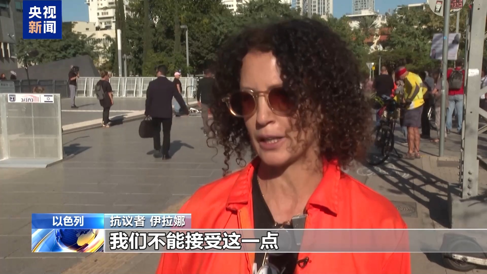 抗议者 伊拉娜:我们在内塔尼亚胡的贪腐听证会期间,几乎每周都来这一次,就是为了持续表达我们的失望。尤其是内塔尼亚胡,拒不认罪,拒不承担责任,还请求总统赫尔佐格赦免他,我们不能接受这一点,以色列仍然有法律存在。