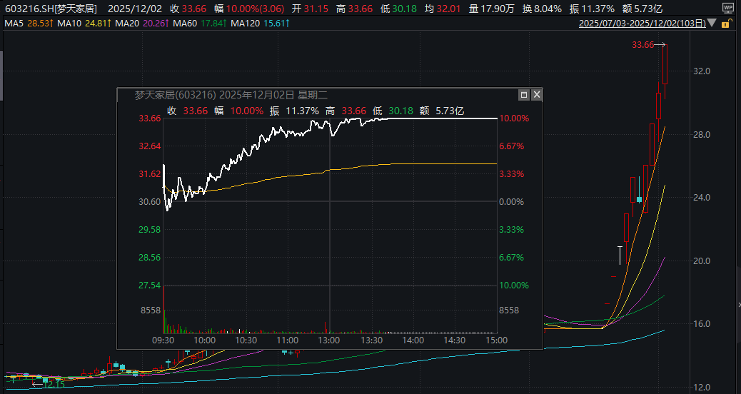 值得注意的是,梦天家居近10个交易日已斩获7个涨停板,累计涨约114%。公司今日盘后发布风险提示称,公司股票连续10个交易日内日收盘价格涨幅偏离值累计超过100%,根据上海证券交易所的有关规定,属于股票交易严重异常波动情形。如公司股价进一步异常上涨,公司可能申请停牌核查。