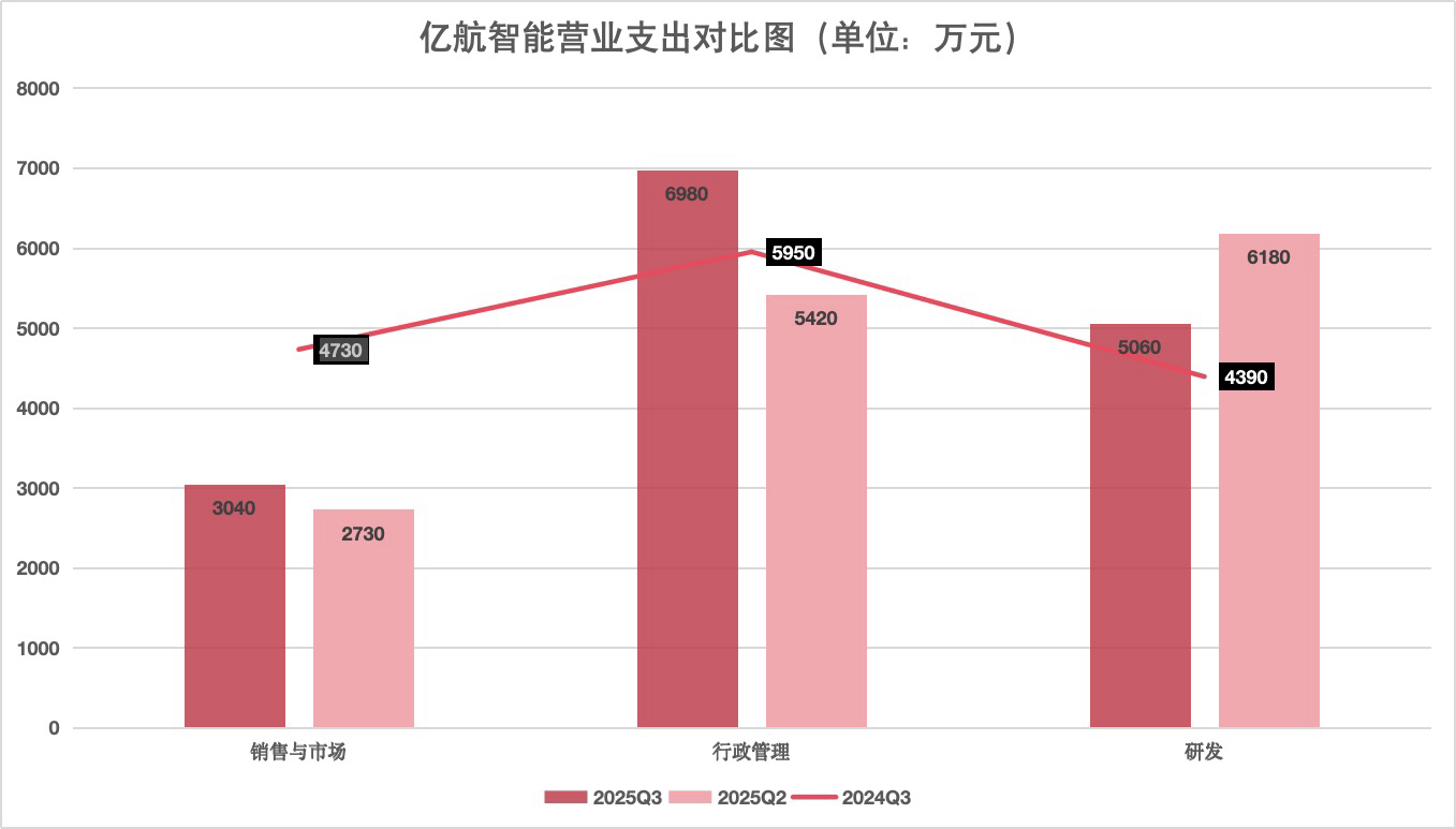 营业支出方面,亿航智能本季度支出约1.51亿元。其中,销售与市场费用为3040万元,同比下降35.73%,研发费用为5060万元,同比增加15.26%,行政管理费用6980万元,同比增加17.31%,显示公司仍在投入阶段。