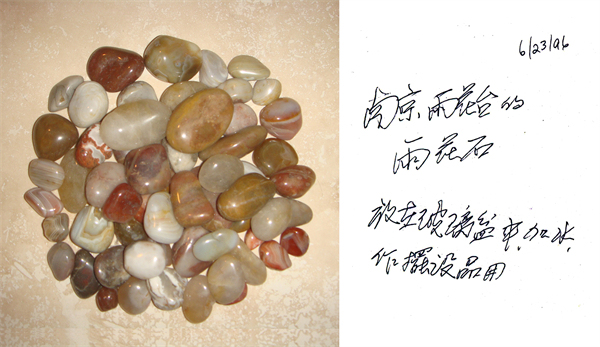 施蛰存先生赠给孙康宜教授的雨花石并手书小笺,张钦次/摄影