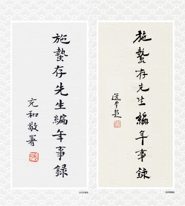 最让我动怀的是,施老与充和两人的交情一直延续到下一代的师生传承关系。在施先生去世四五年之后,有一天我忽然接到上海陈文华教授的来信,她告诉我,施老的另一位弟子沈建中正在编一部《施蛰存先生编年事录》,希望我能帮他索求张充和女士的题字。我接信后立刻赶到充和处。充和看信后十分激动。她那时已经95岁高龄,但一听说是老朋友施蛰存的学生要的题字,就立刻起身“奋笔成书”。她一直叹道:“我万万没有想到,在老朋友离世之后,还有机会为他题字……”但她又说:“我今天写的,只是练习而已。你是知道我的,我每次题字,至少要写上数十遍,在纸上写了又写,试了又试,直到自己完全满意之后,才能算数。你改天再来拿吧!”