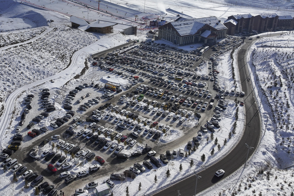 12月1日,新疆阿勒泰将军山国际滑雪度假区停车场停满了车。