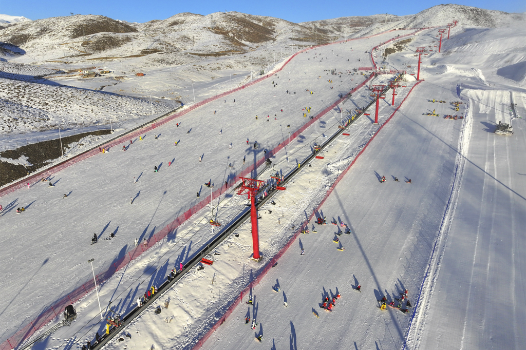 12月3日,游客在吉林长春莲花山滑雪场乘坐魔毯。长春日报 张扬 图