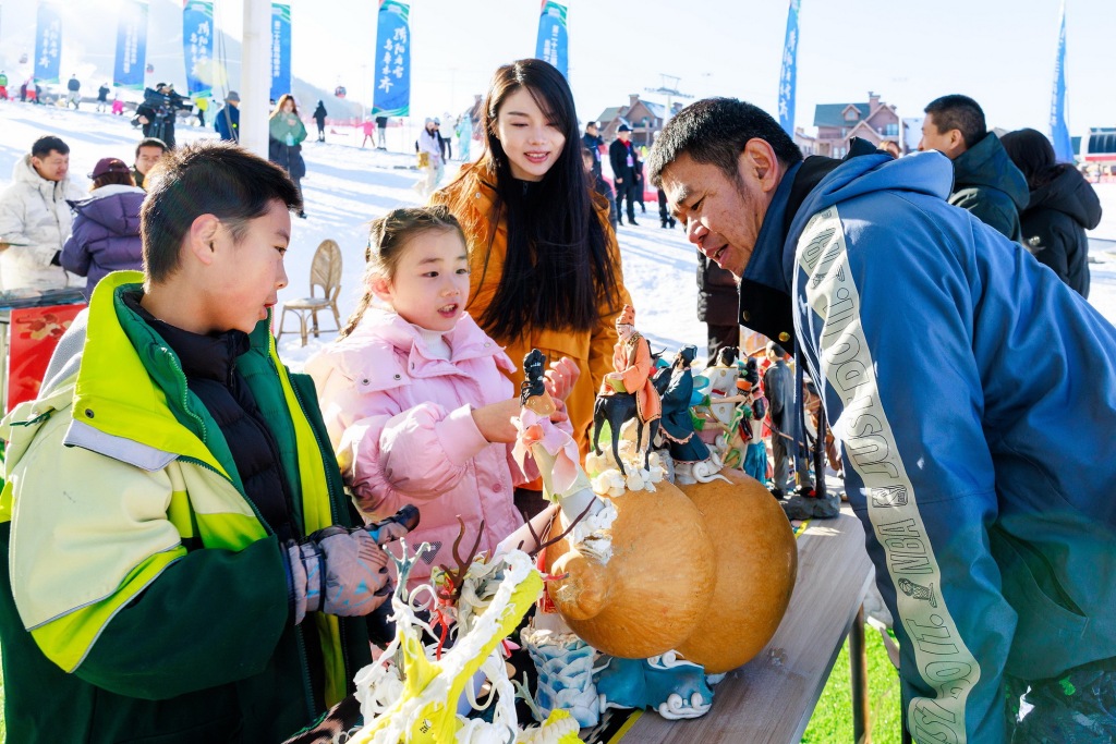 11月29日,新疆乌鲁木齐,中小学生在丝绸之路山地度假区了解新疆面塑制作过程。