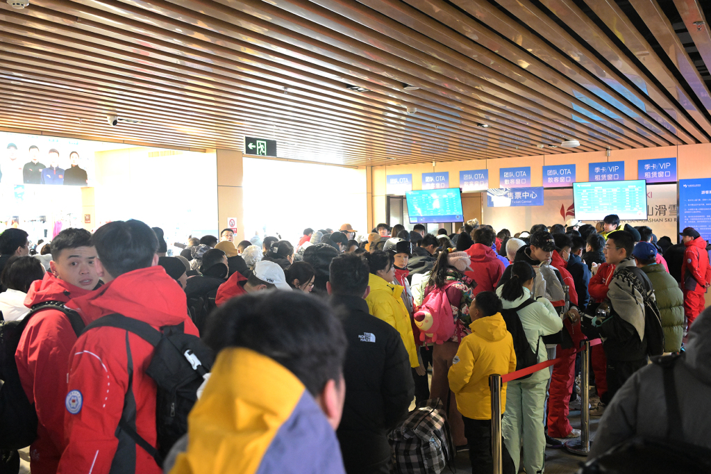 12月3日,吉林长春,莲花山滑雪场大厅排起长队。长春日报 张扬 图