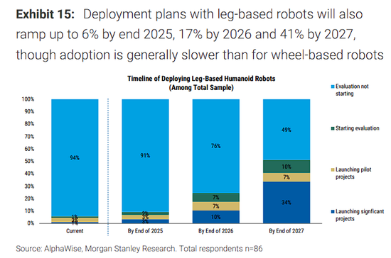 双足机器人则为2025年6%、2026年17%、2027年41%。