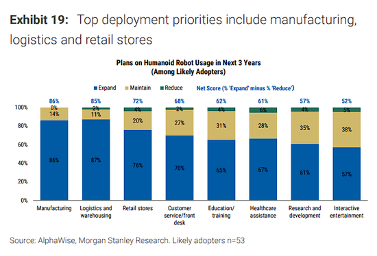 基于调研结果,摩根士丹利维持对人形机器人长期前景的积极判断,但强调当前仍处于早期阶段,规模化放量需要时间。