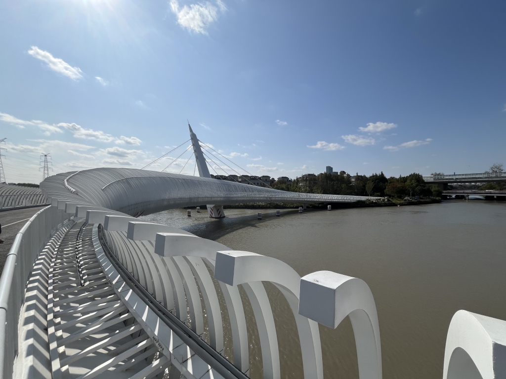 在浦东洋泾港与张家浜两河交汇处,一座227米长的“水舞桥”如白色飘带在秋日暖阳下优雅舒展。这座新建的大型景观桥,让全长12.5公里的陆家嘴水环实现圆满“闭环”,更为市民提供了一处日夜皆景的休闲空间。