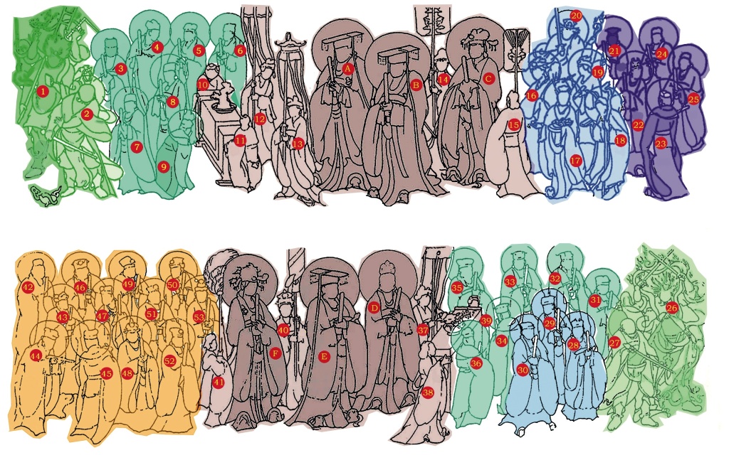 多伦多藏平阳府壁画东西壁编号图(李凇制作)
