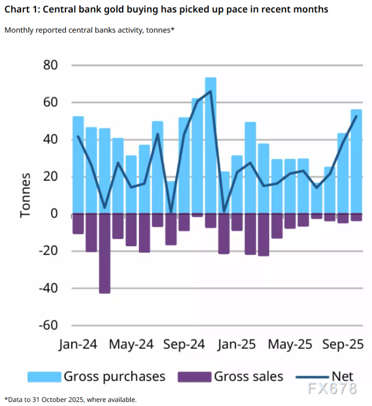 戈保尔在世界黄金协会最新发布的报告中指出:“10月各国央行对黄金的需求依然强劲,总购买量达53吨(环比增长36%),延续了今年以来的旺盛趋势。购买活动仍集中在少数央行,其中波兰国家银行在本月重新活跃,成为主要引领者。”