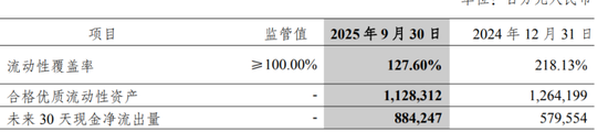 同时,该行流动性覆盖率127.6%,较上年末的218.13%下降了90.53个百分点。
