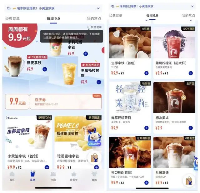 “瑞幸咖啡现在每周9.9元活动,可以用‘奇怪’二字来形容。”瑞幸咖啡常客萧虹向《财经天下》抱怨。她从两年前的咖啡低价大战起,开始关注和购买瑞幸咖啡产品,下单过西梅美式、轻轻茉莉、柚C冰茶……凭借9.9元低价,她把各种口味尝了个遍。
