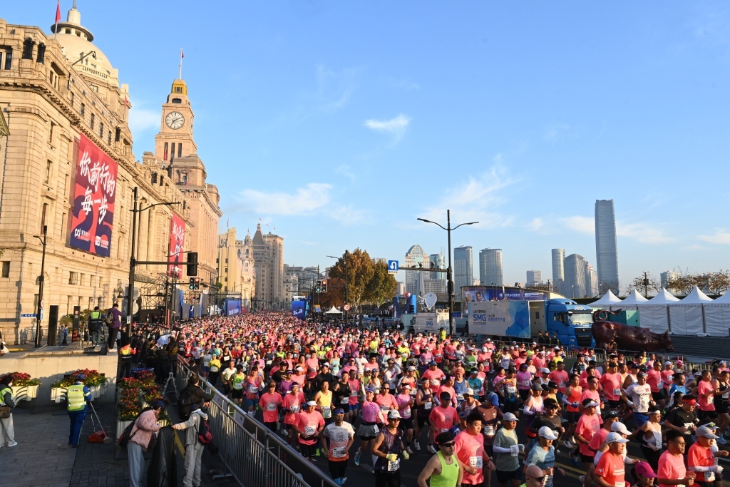 2025上海马拉松鸣枪。澎湃新闻记者 朱伟辉 图