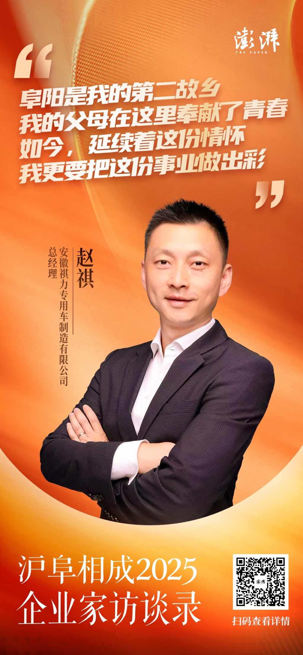 赵祺是上海人,早年在国外工作,拥有近20年的大型跨国企业管理经验。2019年,赵祺带领经验丰富的团队来到阜阳,成立安徽祺力专用车制造有限公司。同年,安徽祺力专用车制造有限公司落户安徽阜阳合肥现代产业园,专注于汽车制造垂直行业深度改装。