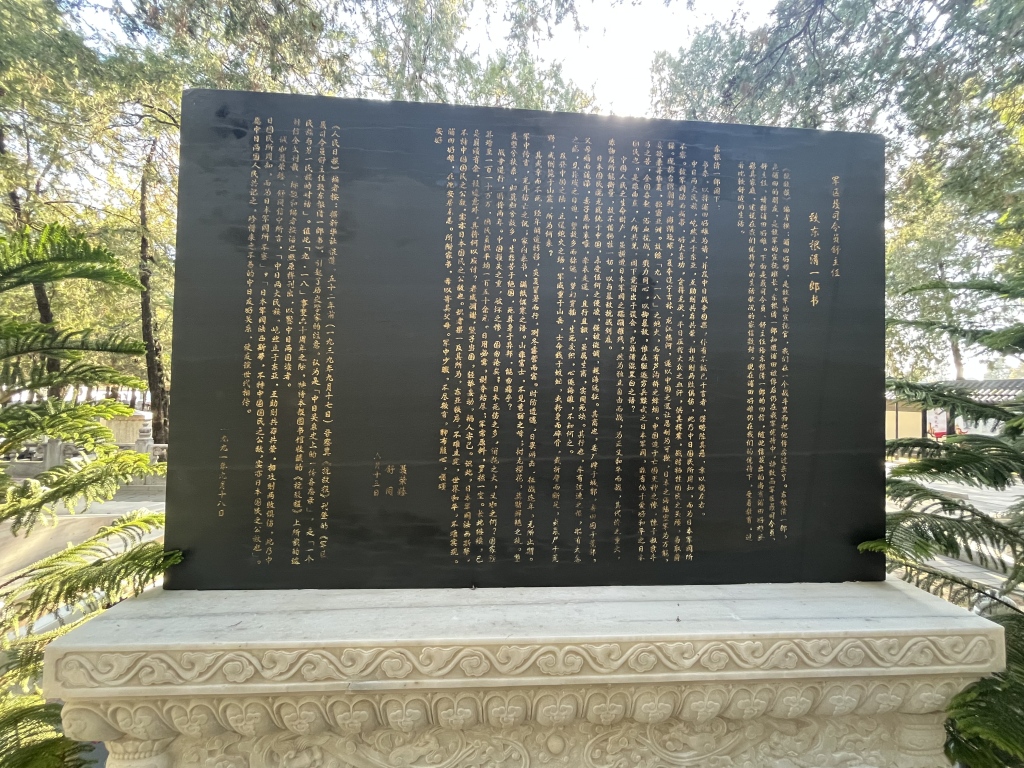 背面则完整镌刻着1939年6月13日《致东根清一郎书》全文。这封由聂荣臻、舒同联署的信件,其核心思想——以合作取代对抗、以民本超越私欲、以清醒的史观抵御短视的冲突——仍是当前中日关系亟需重温的智慧与箴言。
