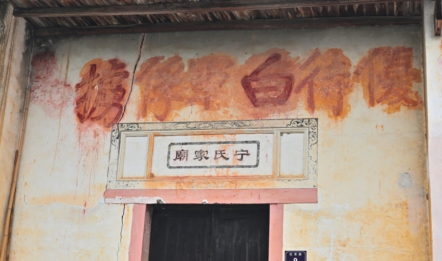 宁都县小布镇的“宁氏家庙”,一堵几丈高的墙巍然耸立,上面赫然书写着一幅红色榜书标语“优待白军俘虏” 。