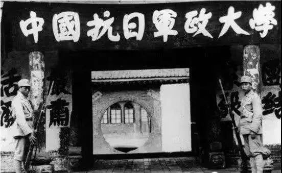 舒同书“中国抗日军政大学” 校名及校训“团结、紧张、严肃、活泼”。