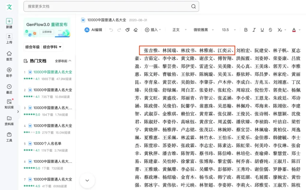 这两天,百度文库《10000中国普通人名大全》中“张吉惟、林国瑞、林玟书、林雅南、江奕云”五人的名字,被曝频繁出现在采购评审、比赛获奖名单、行政处罚公示等不同场景,引发舆论对公共事务造假的质疑,这五人也被称为“全网最忙五人组”。