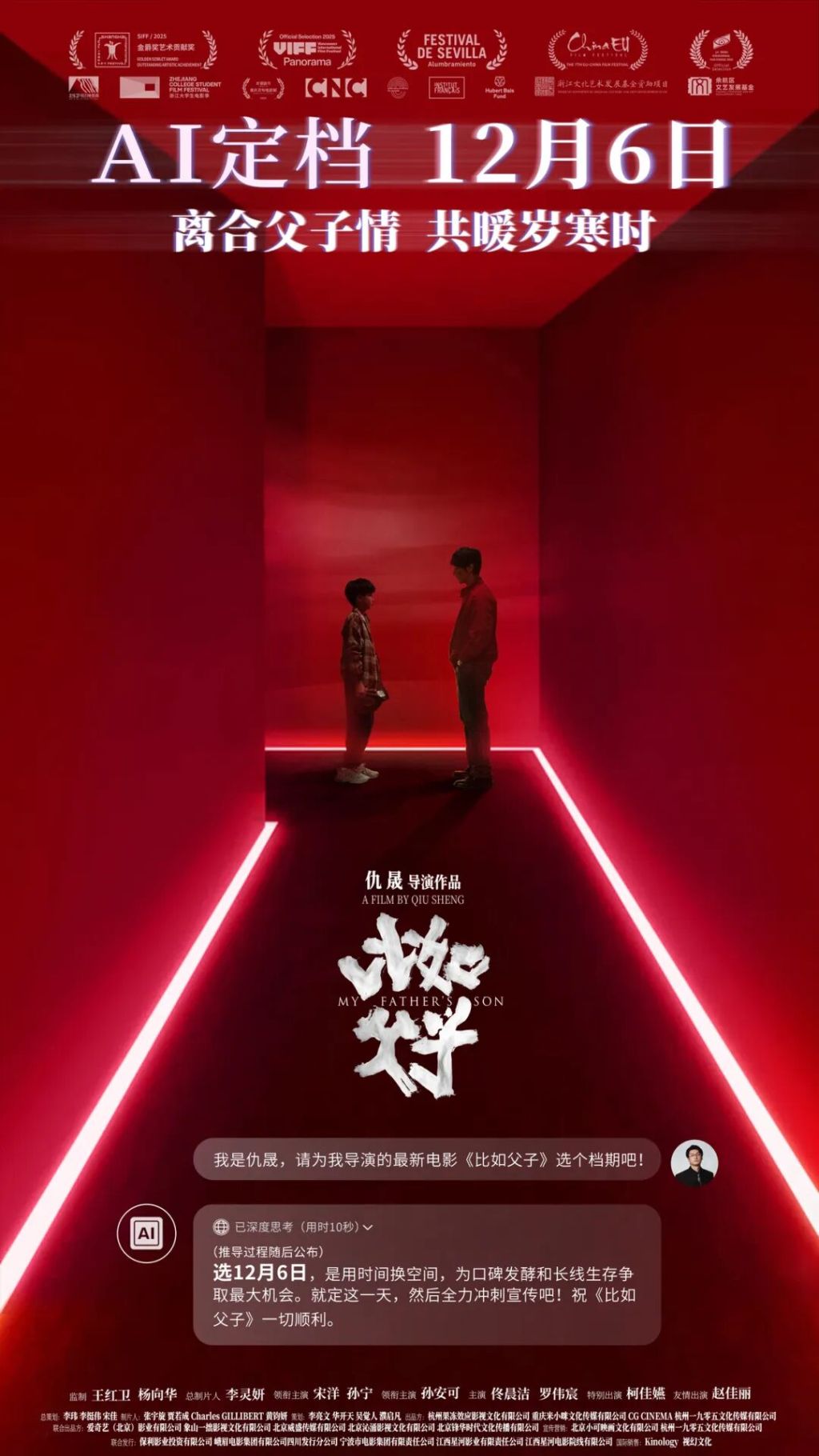 “那些没说出口的爱,终会在时间与科技的回声里,被重新听见”。12月5日,电影《比如父子》在北京举行首映礼。该片于12月6日全国上映。