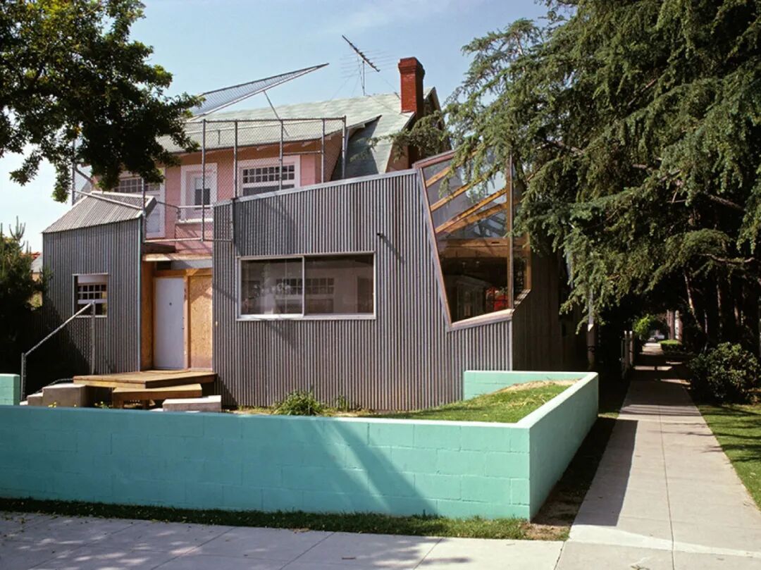 盖里早在1978年便以自己在圣莫尼卡的住宅引起关注——他将一栋普通的木构屋拆解、包裹、重组,用胶合板、波纹铁皮与金属网制造出“粗暴、破碎却富含情绪”的表达。这一作品反映美国社会在60—70年代的断裂,也确立了他作为建筑界“反叛者”的地位。