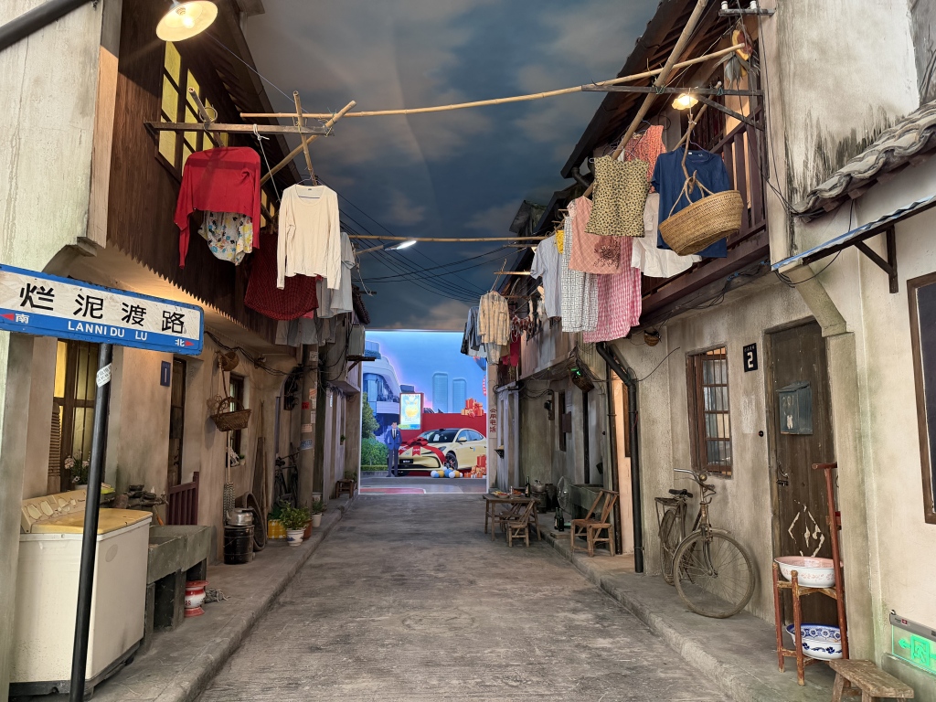 此外,更新的主题展,在“烂泥渡路”的尽头设置开关,穿过幕墙,观众就能从30多年前的生活,穿越到有前滩公园巷、世博双子山的现代场景,此番今昔对比也让参观者有了更直观的感受。