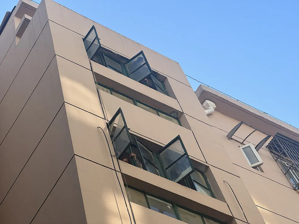 保洁工作人员正在清理楼道窗户。澎湃新闻记者 徐亦嘉 图