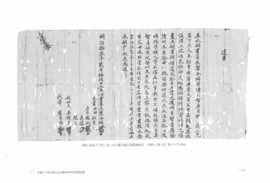 图2 同治十三年二月十九日瞿全福等立承嗣书