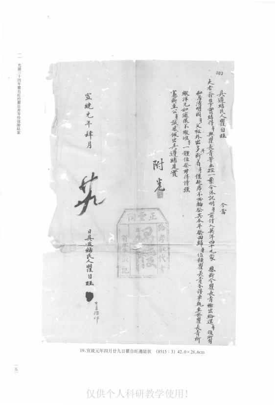 图4 宣统元年四月廿九日瞿自旺遵结狀
