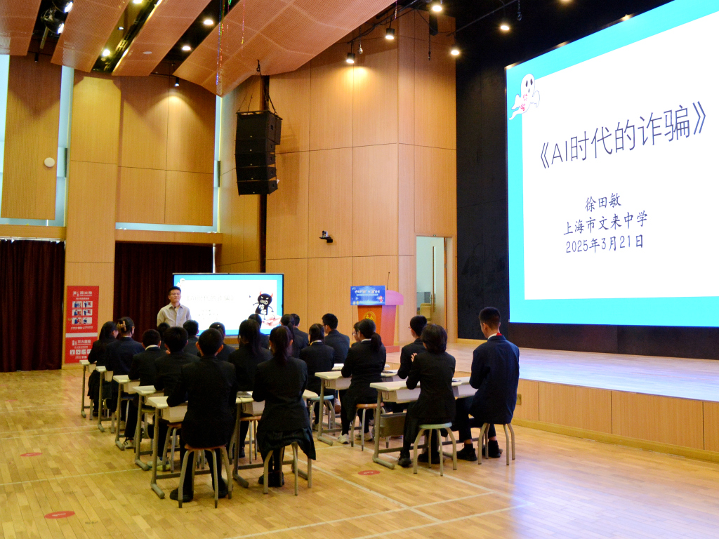 2025年3月21日,上海市文来中学八(4)班的同学们经历了一场特殊的“测试”。课堂上,班主任徐田敏拿出两条短信让同学们分辨。短信里,自称是文来中学总务处王老师的人称,因为智慧消费系统升级,根据有关文件要求,需要预存2000元的食堂保证金。
