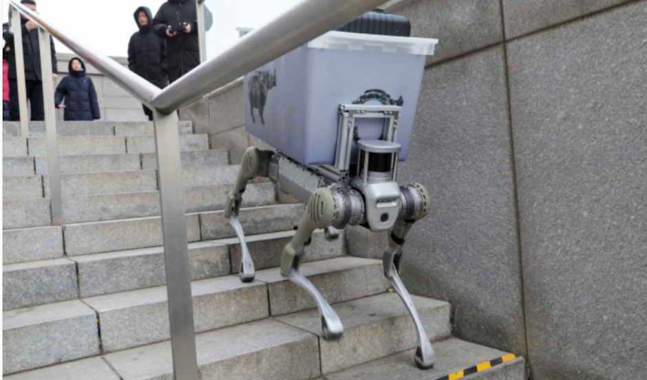 在跨越了坡道与楼梯后,机器人抵达交付区。