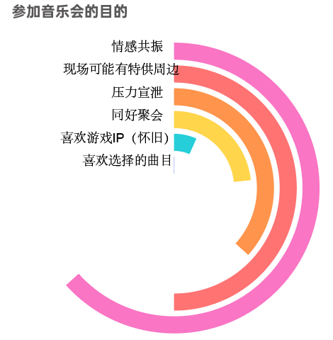 同一个IP音乐会每年只有2-5次(双城或5城巡演),如果想要多听,必然跨城,但只有3人选择从上海前往南京、昆山、杭州,1人从杭州来上海, 80.95%选择在上海“随缘”。可见,游戏音乐会的听众更愿意就近参与。
